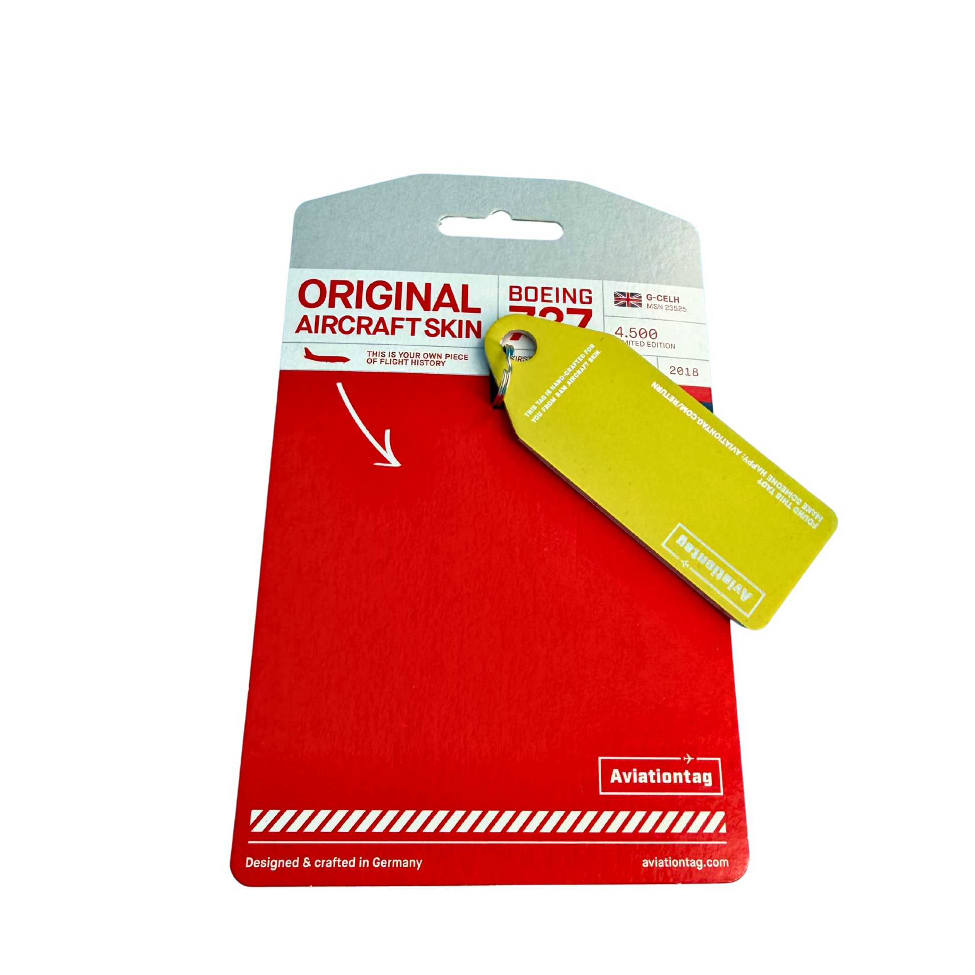 Dieser Aviationtag stammt aus der originalen Außenhaut der Boeing 737-300 G-CELH, die viele Jahre für Jet 2 im Einsatz war.